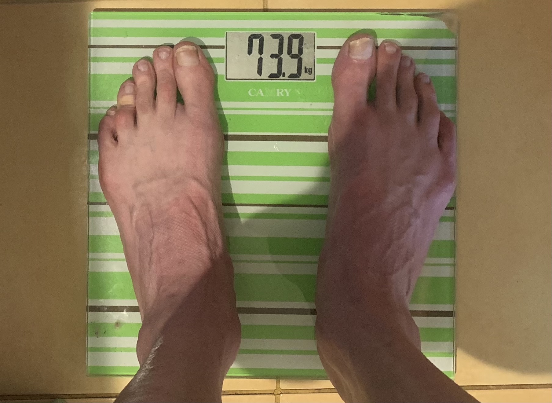 Lagedilt kodu poole kulgesin juba suhkrulaksu õndsas hurmas. Pärast duši all käimist kaalule astudes näitas see ulme numbrit – tavalise 76-77kg asemel 73,9kg.