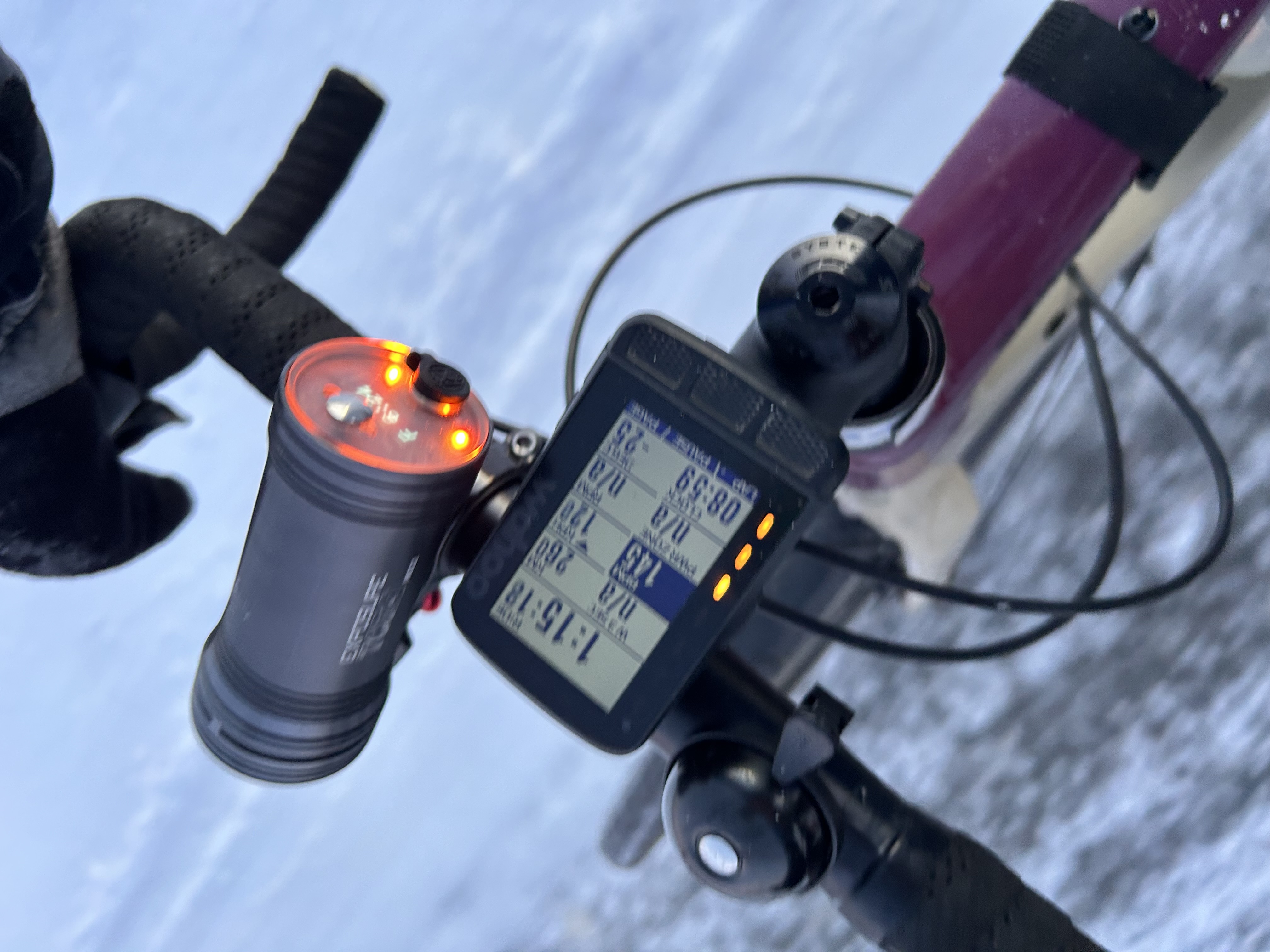 Edasi hakkas ka muu elektroonika alla andma. Esimesena rändas Pohla Garmin sooja taskusse. Seejärel pakkis ennast kokku Kulli Wahoo Bolt. Siis Garmini radar. Aga ka üks on lahinguväljal sõdur. Minu Wahoo Element Roam näitas numbreid kuni lõpuni. Lisaks toimisid lõpuni Exposure Lighst tuled. Sellel päeval ei huvitanud kedagi kilomeetrid, aeg, võimsus, pulss ega isegi max kiirus. Vaatasime ainult temperatuuri.