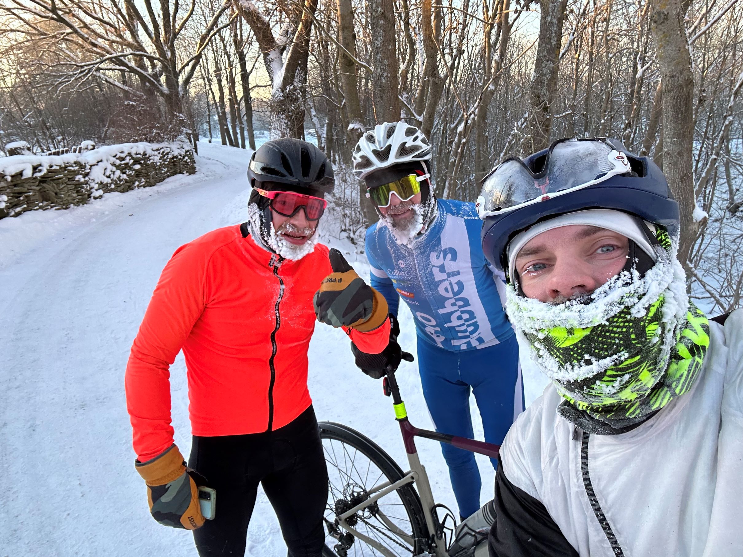 Mind ootasid Kull, Pohl ja Kaupo Raag. Jäised ei olnud nemad, vaid temperatuur oli langenud -20C peale. Seda mere äärest 6km sisemaa poole sõites. Õnneks olin keskmisest külmema ilmaga arvestanud. 2010 aastal tegin -20C-ga Talvise rattavarustuse testi käigus kolmeka ehk 3h treeningu. Kogemus oli olemas.