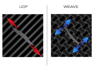 Tegelikult FFWD kasutab mitmekihilist karbonit, mis on kokku laotud erinevat tüüpi karbon lehtedest. Ainult välimine kiht on valmistatud 3K karbonist (punutud kiud). Selle all on mitu kihti UDF (ühesuunalise kiuga) karbon lehti, mis on laotud nii, et kiud jookseks teineteise suhtes erinevate nurkade all. Miks? Sest karbon on tõmbele väga vastupidav, aga mitte survele. Seda võib võrrelda nöörijupiga, mille külge võib riputada mõningat raskust, aga sirgelt püsti seisma seda ei pane.