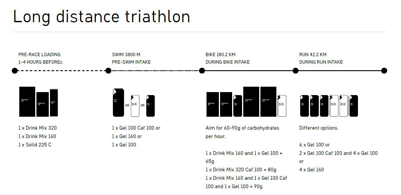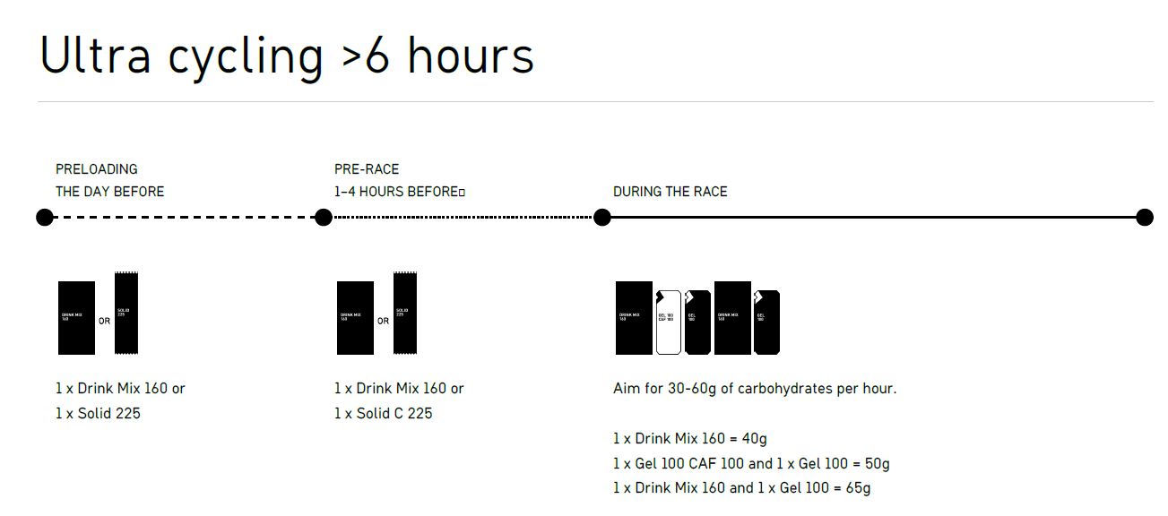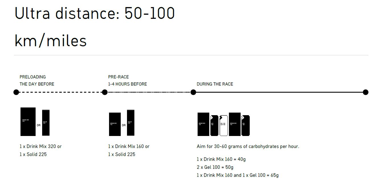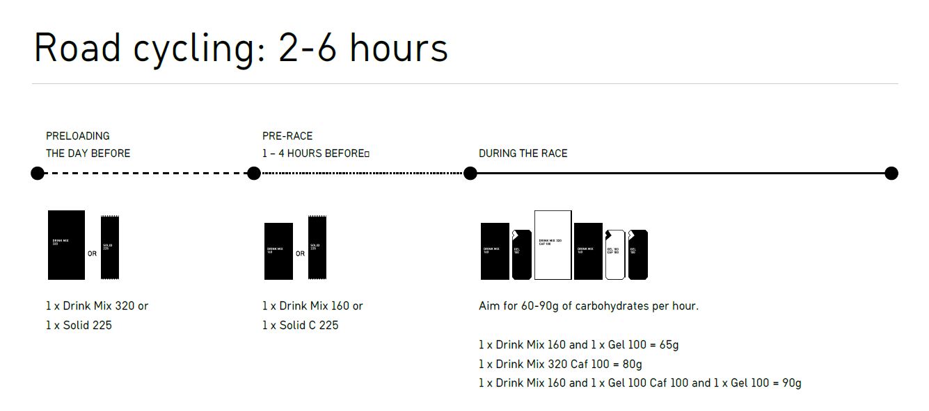 Energia/süsivesikute vajadus sõltub ka tegevuse iseloomust, intensiivsusest ja pikkusest. Sellest lähtuvalt on soovitused antud 1 h kohta. Vastava koguse, kui palju geele/jooke/batoone on vaja saad, kui korrutad sulle sobiva toodete kombinatsiooni läbi plaanitud tegevuse kestvusega tundides.